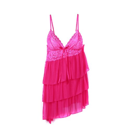 Aolevia Européen Lingerie Nuisette Babydoll Femme - Sexy Robe de Chambre Dentelle Avec String - Robe de Nuit Sans Manche Idéal Pour Automne Hiver - EU Taille 34-40 Style 42 (Rose)