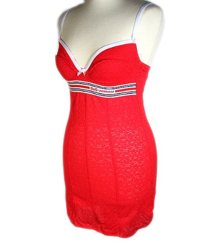 Femme dentelle nuisette De haute qualité avec de nombreux détails sophistiques. Contenu: 1 nuisette Collection: "Campus Babe" Couleur: rouge/blanc (floral-look)