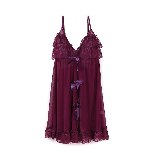 Aolevia Européen Lingerie Nuisette Babydoll Femme - Sexy Robe de Chambre Dentelle Avec String - Robe de Nuit Sans Manche Idéal Pour Automne Hiver - EU Taille 34-40 Style 5 (Violet)
